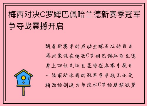 随着新赛季的启动,全球足坛的目光再次聚焦...