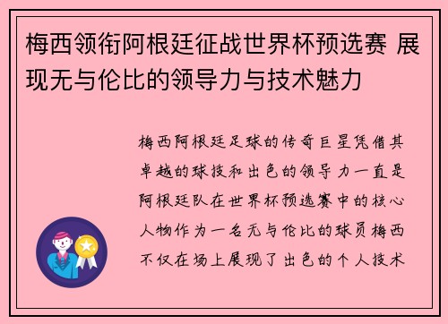 梅西,阿根廷足球的传奇巨星,凭借其卓越的...