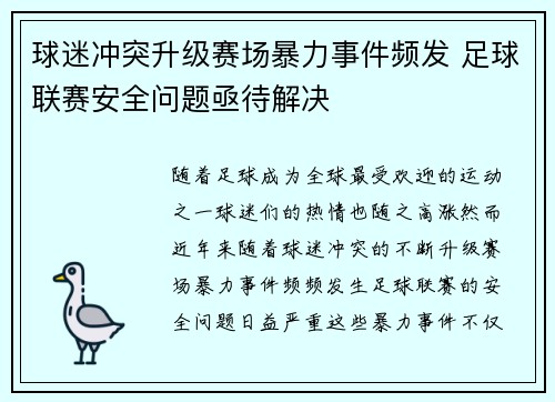 球迷冲突升级导致赛场混乱 多名观众与安保人员发生激烈对抗